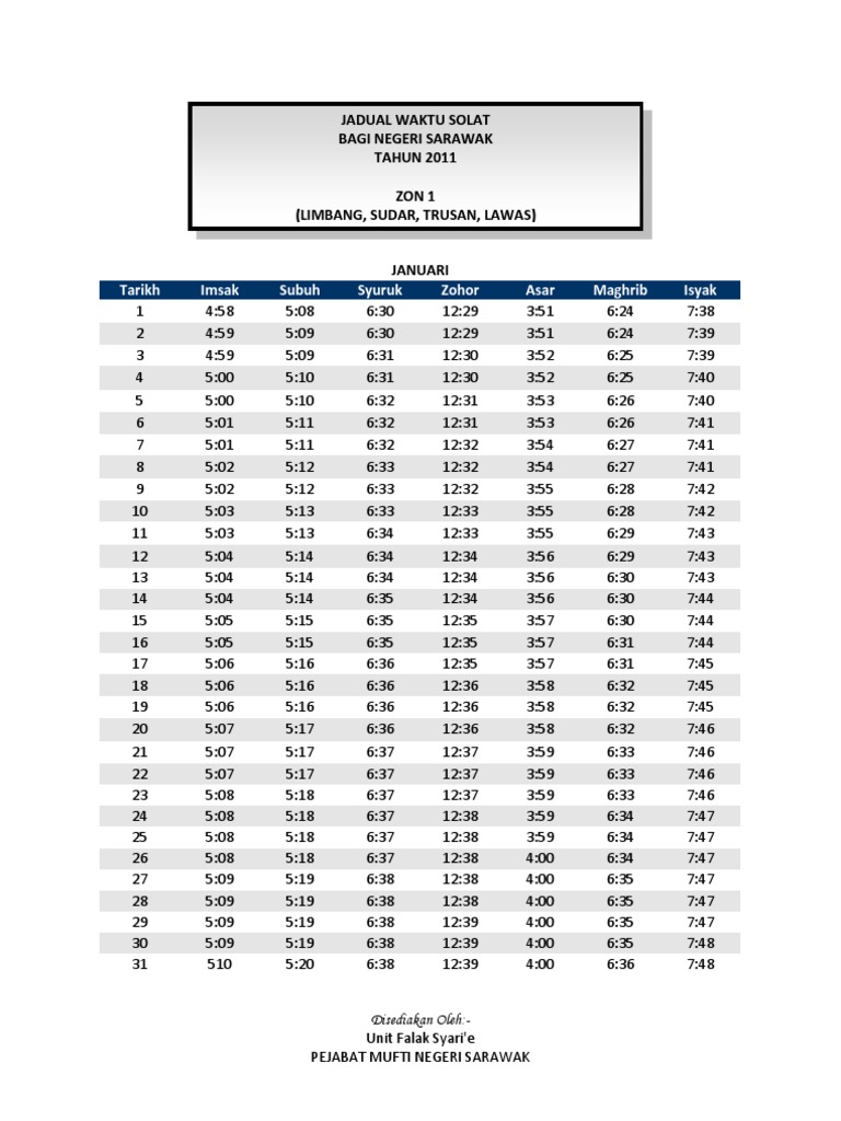 . Jadual Waktu Solat Tahun 2022 Zon 1 Limbang Sundar Trusan Lawas Jadual Waktu Solat Tahun 2022 Zon 2 Niah Bekenu Miri Sibuti Marudi Jadual Waktu Solat Tahun 2022 Zon 3 Tatau Suai Belaga Pandan Sebauh Bintulu Jadual Waktu Solat Tahun 2022 Zon 7 Samarahan Simunjan Serian Sebuyau Maludam. 21 Jul 2021 11 Zulhijjah 1442 Waktu solat bagi kawasan Limbang Sundar Trusan Lawas. Jadual Waktu Solat Jumaat Lawas Solat Jumaat ialah solat fardu dua rakaat yang dilakukan pada hari Jumaat menggantikan solat Zohor dan ia dilakukan secara berjemaah selepas mendengar Khutbah Jumaat.